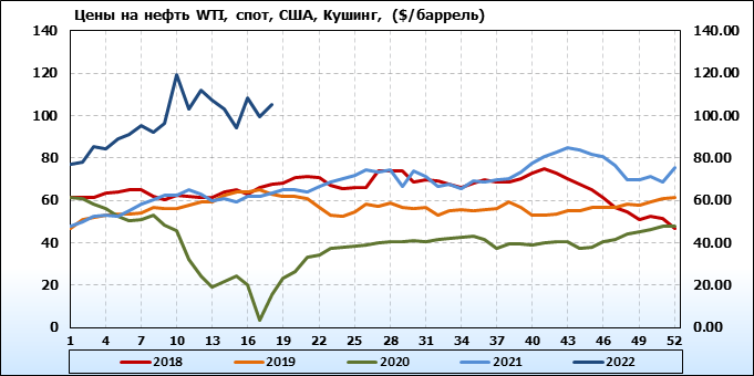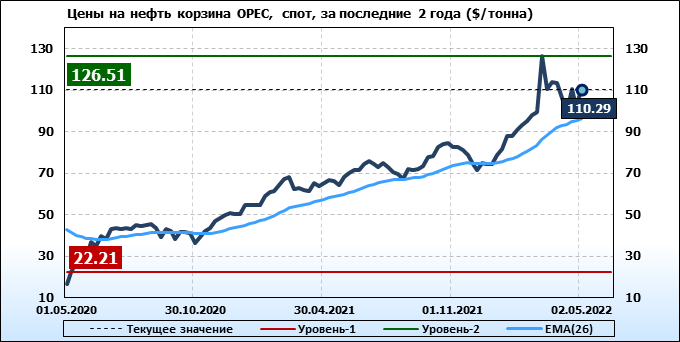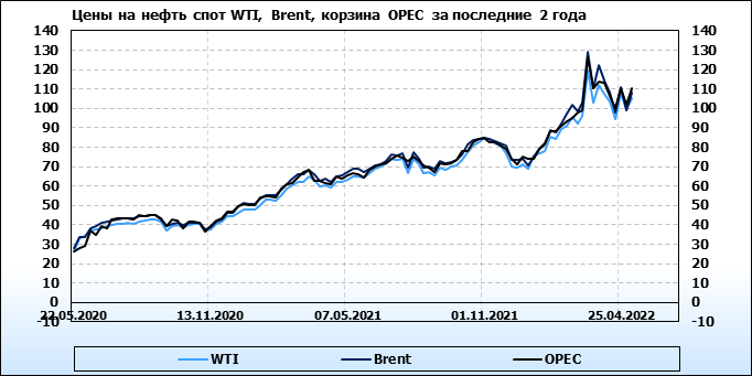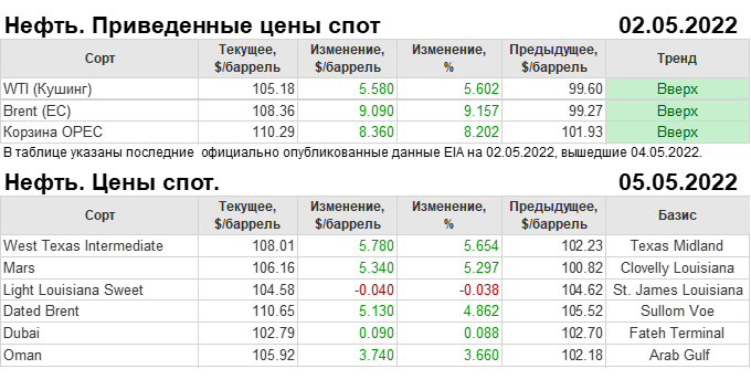 Нефть. Мировые цены спот по сортам и базисам. Данные на 05.05.2022