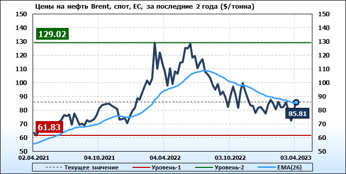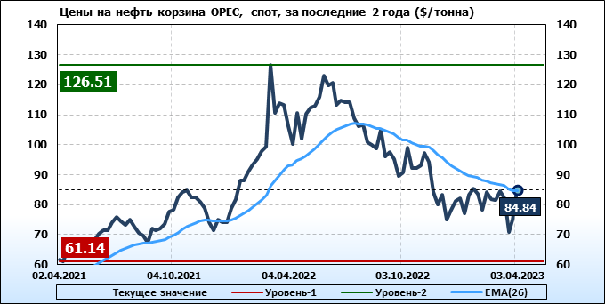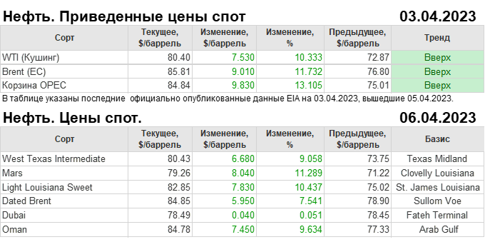 Нефть. Мировые цены спот по сортам и базисам. Данные на 06.04.2023