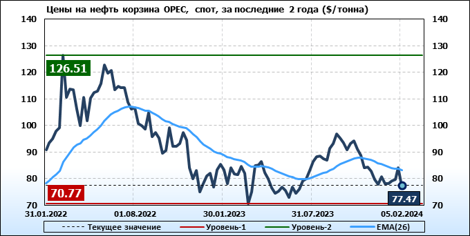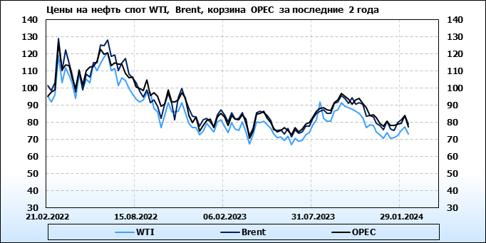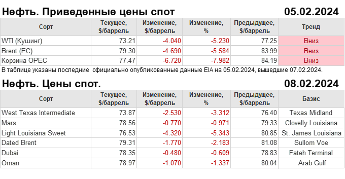 Нефть. Мировые цены спот по сортам и базисам. Данные на 08.02.2024