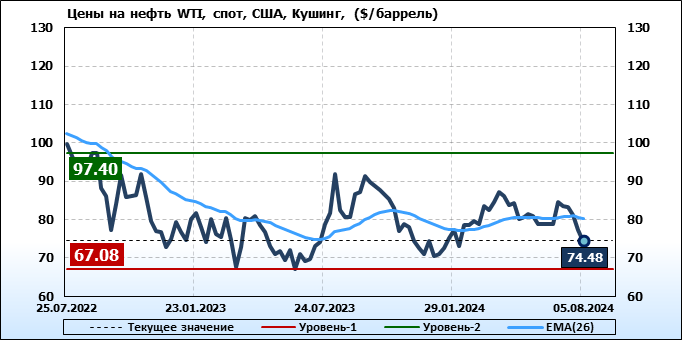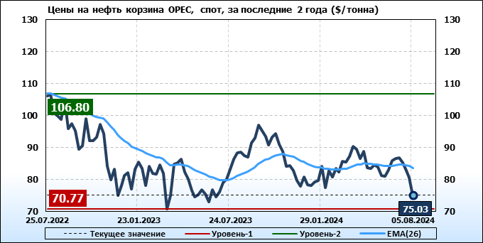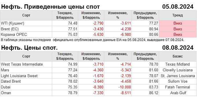 Нефть. Мировые цены спот по сортам и базисам. Данные на 08.08.2024