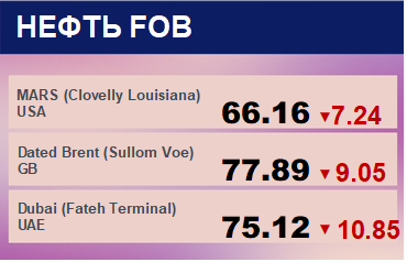 Цены на нефть сорта WTI с базиса поставки Кушинг упали на -0.27 до 76.83 долларов за баррель. Тренд на рынке WTI медвежий. Цены на нефть сорта Brent с поставкой из портов ЕС упали на -0.14 до 83.36 долларов за баррель. Тренд на рынке Brent падающий. Цены на корзину сортов нефти стран членов ОПЕК выросли на 3.23 до 83.16 долларов за баррель. Ценовая тенденция по корзине ОПЕК направлена вниз. Цена на сорт MARS упала на -7.24 до 66.16 долларов за баррель. Цена на сорт Oman упала на -7.87 до 73.14 долларов за баррель. Сорт марки Dubai подешевел на -10.85 до 75.12 долларов за баррель.
