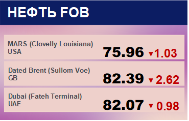 Цены на нефть сорта WTI с базиса поставки Кушинг выросли на 4.82 до 80.39 долларов за баррель. Тренд на рынке WTI медвежий. Цены на нефть сорта Brent с поставкой из портов ЕС выросли на 3.55 до 85.86 долларов за баррель. Тренд на рынке Brent падающий. Цены на корзину сортов нефти стран членов ОПЕК выросли на 2.95 до 84.59 долларов за баррель. Ценовая тенденция по корзине ОПЕК направлена вниз. Цена на сорт MARS упала на -1.03 до 75.96 долларов за баррель. Цена на сорт Oman упала на -2.63 до 81.52 долларов за баррель. Сорт марки Dubai подешевел на -0.98 до 82.07 долларов за баррель.
