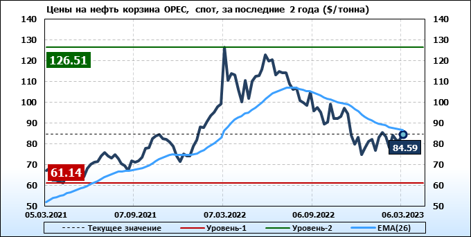 Нефть. Мировые цены спот по сортам и базисам. Данные на 09.03.2023
