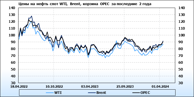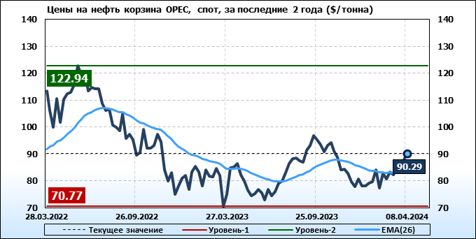 Нефть. Мировые цены спот по сортам и базисам. Данные на 11.04.2024