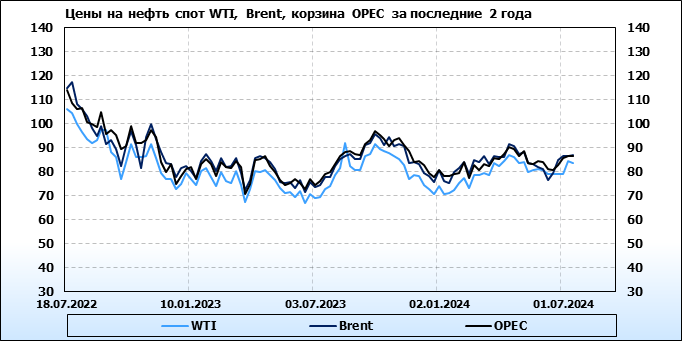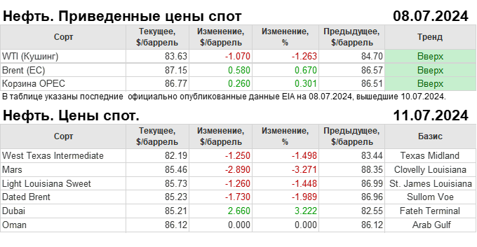 Нефть. Мировые цены спот по сортам и базисам. Данные на 11.07.2024