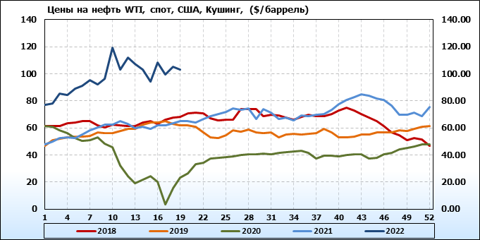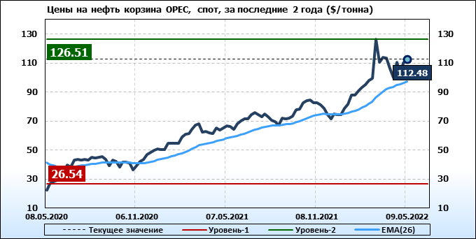 Нефть. Мировые цены спот по сортам и базисам. Данные на 12.05.2022