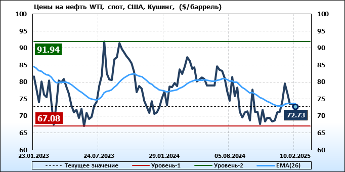Нефть. Мировые цены спот по сортам и базисам. Данные на 13.02.2025