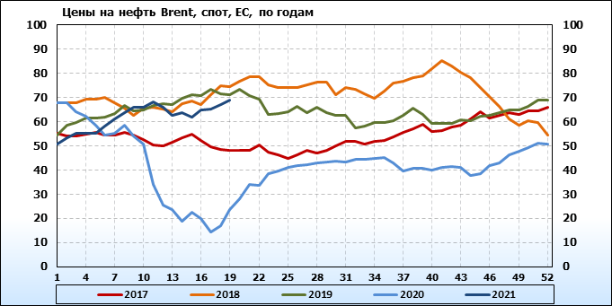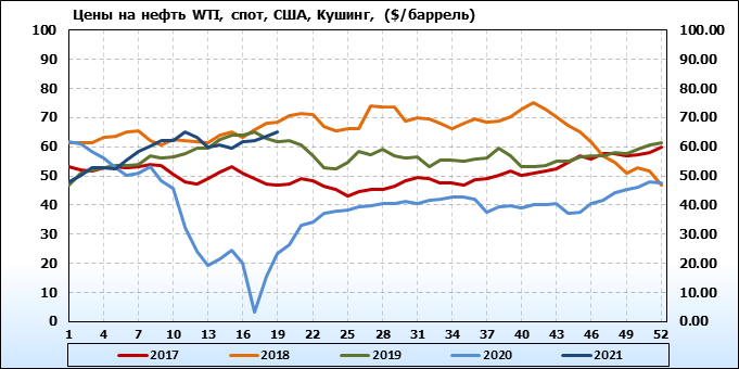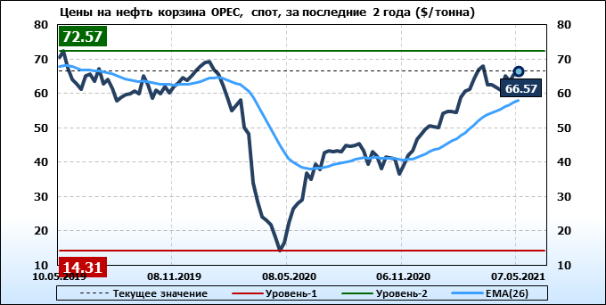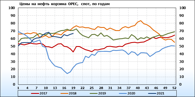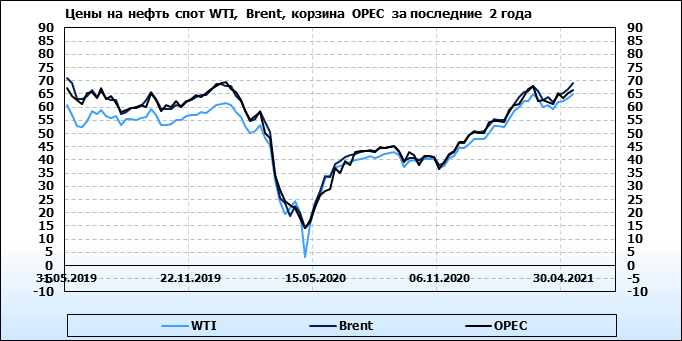Нефть. Мировые цены спот по сортам и базисам. Данные на 13.05.2021