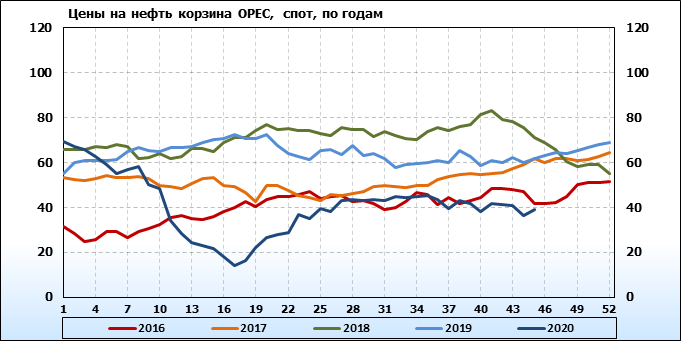 Нефть. Мировые цены спот по сортам и базисам. Данные на 13.11.2020