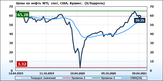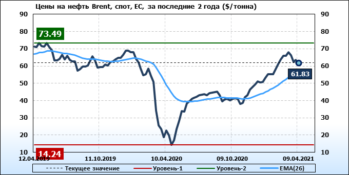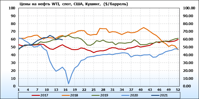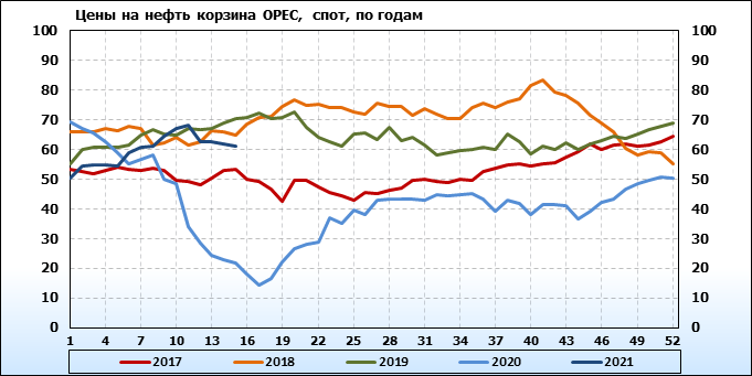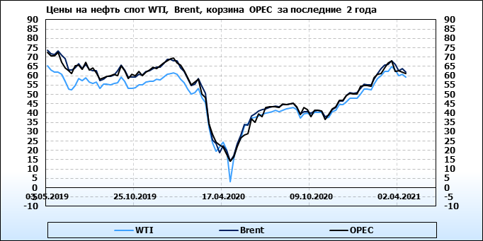 Нефть. Мировые цены спот по сортам и базисам. Данные на 15.04.2021