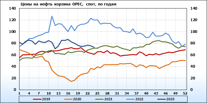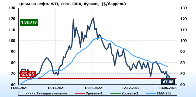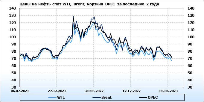 Нефть. Мировые цены спот по сортам и базисам. Данные на 15.06.2023