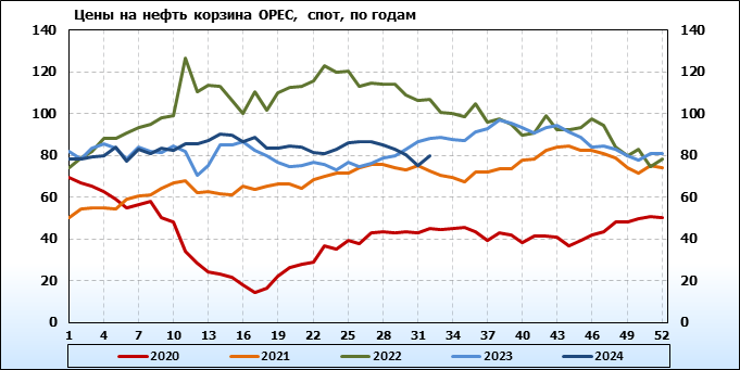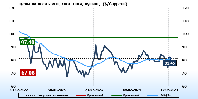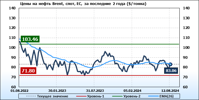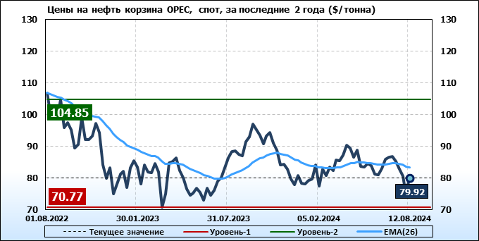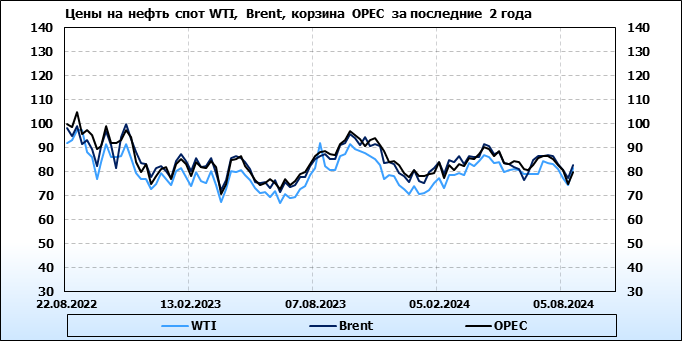 Нефть. Мировые цены спот по сортам и базисам. Данные на 15.08.2024