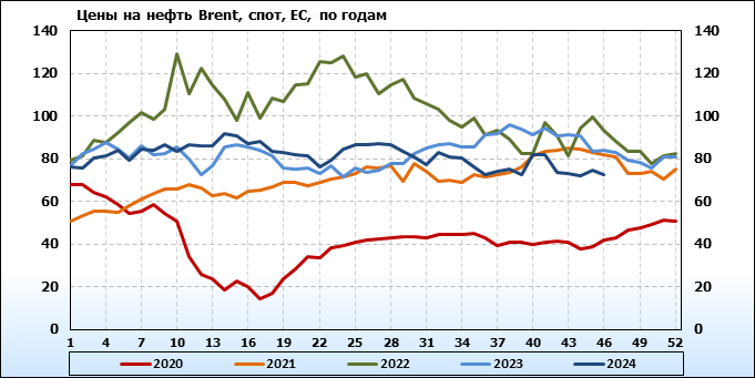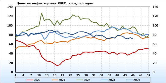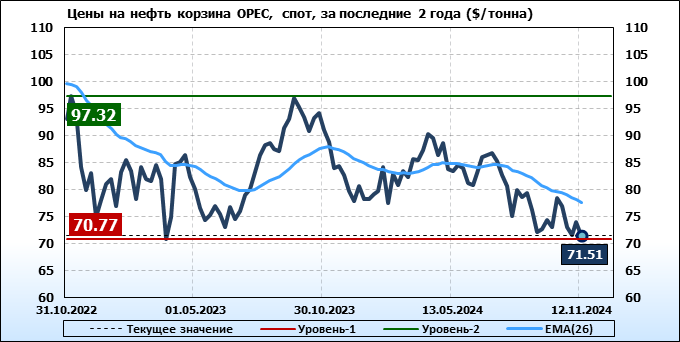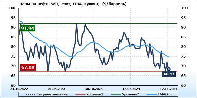 Нефть. Мировые цены спот по сортам и базисам. Данные на 15.11.2024