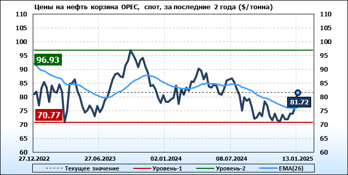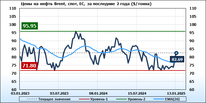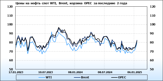 Нефть. Мировые цены спот по сортам и базисам. Данные на 16.01.2025