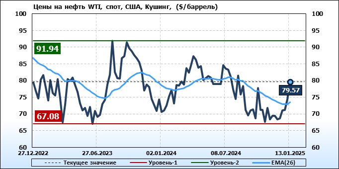 EIA. Добыча, импорт, экспорт нефти в США на 15 января 2025
