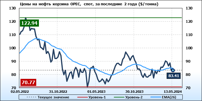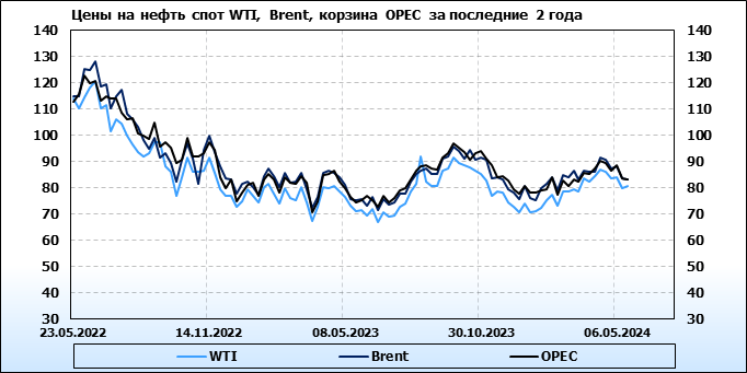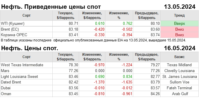 Нефть. Мировые цены спот по сортам и базисам. Данные на 16.05.2024