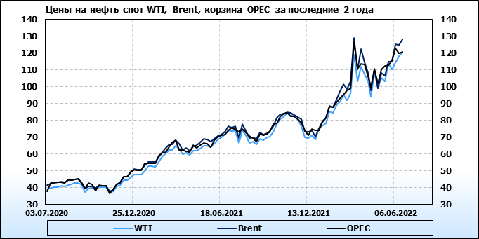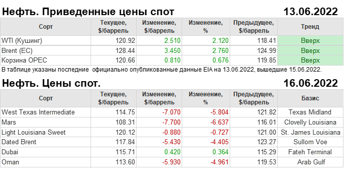 Нефть. Мировые цены спот по сортам и базисам. Данные на 16.06.2022