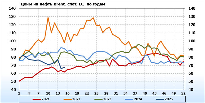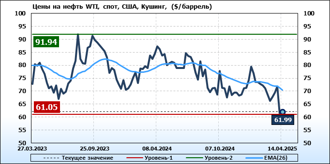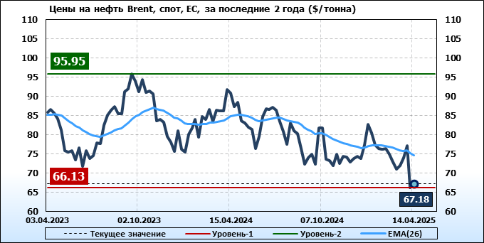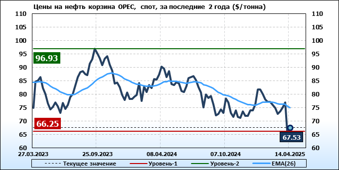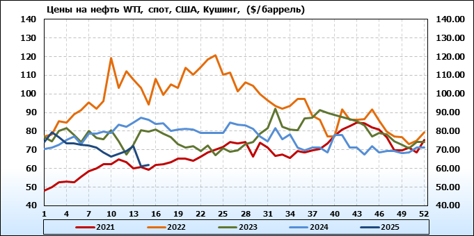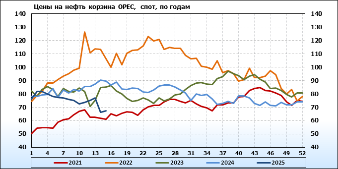 Нефть. Мировые цены спот по сортам и базисам. Данные на 17.04.2025