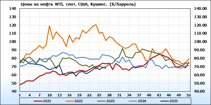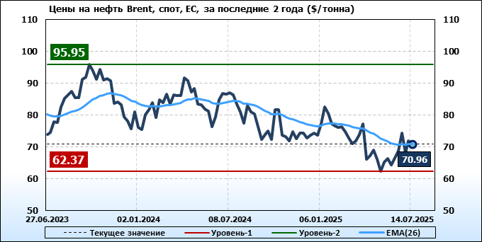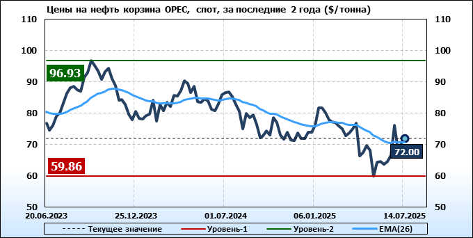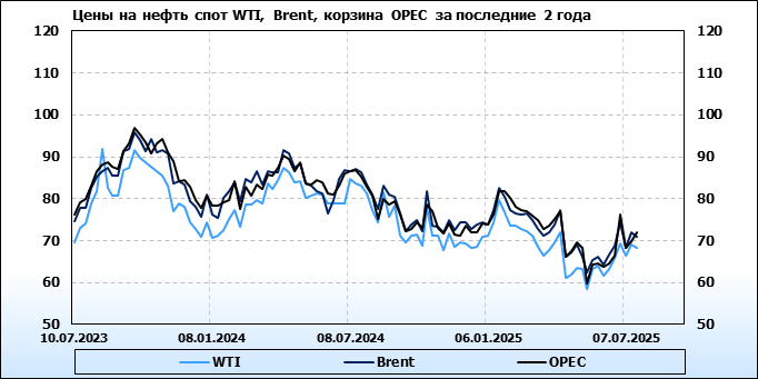Нефть. Мировые цены спот по сортам и базисам. Данные на 17.07.2025