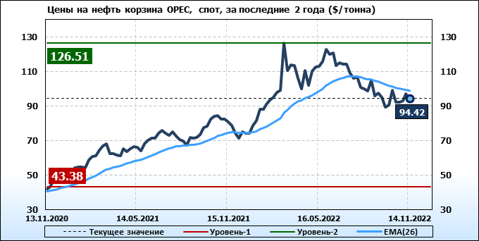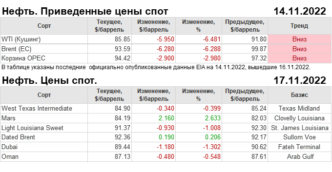 Нефть. Мировые цены спот по сортам и базисам. Данные на 17.11.2022