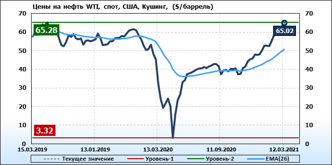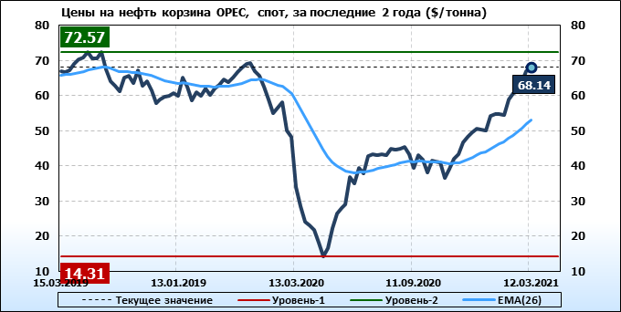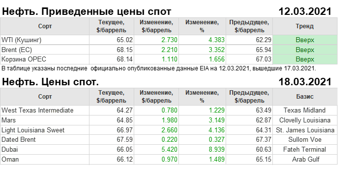 Нефть. Мировые цены спот по сортам и базисам. Данные на 18.03.2021