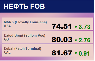 Цены на нефть сорта WTI с базиса поставки Кушинг упали на -1.11 до 80.85 долларов за баррель. Тренд на рынке WTI бычий. Цены на нефть сорта Brent с поставкой из портов ЕС упали на -1.28 до 81.94 долларов за баррель. Тренд на рынке Brent растущий. Цены на корзину сортов нефти стран членов ОПЕК упали на -1.44 до 80.9 долларов за баррель. Ценовая тенденция по корзине ОПЕК направлена вверх. Цена на сорт MARS упала на -3.73 до 74.51 долларов за баррель. Цена на сорт Oman упала на -1.95 до 79.4 долларов за баррель. Сорт марки Dubai подешевел на -0.91 до 81.67 долларов за баррель.