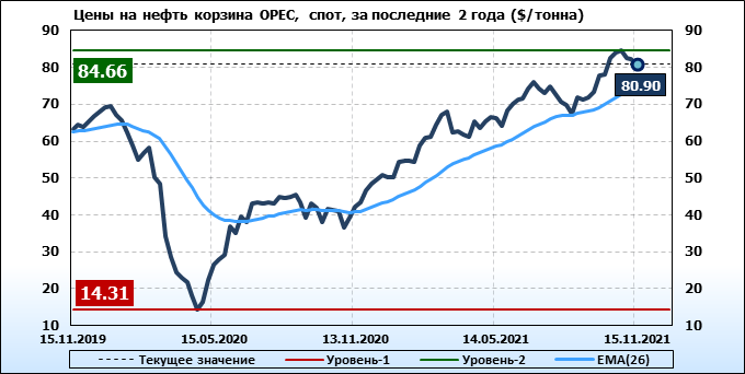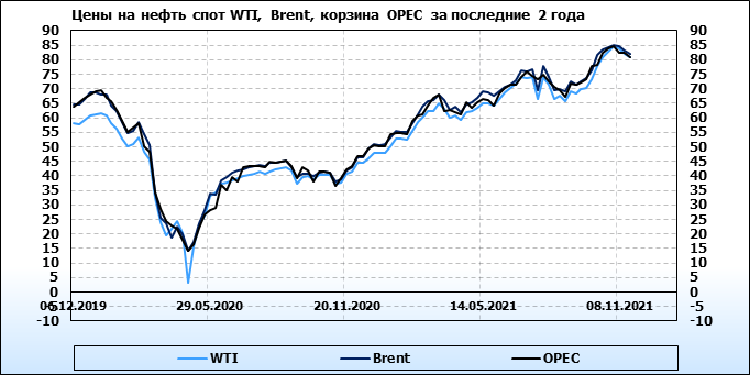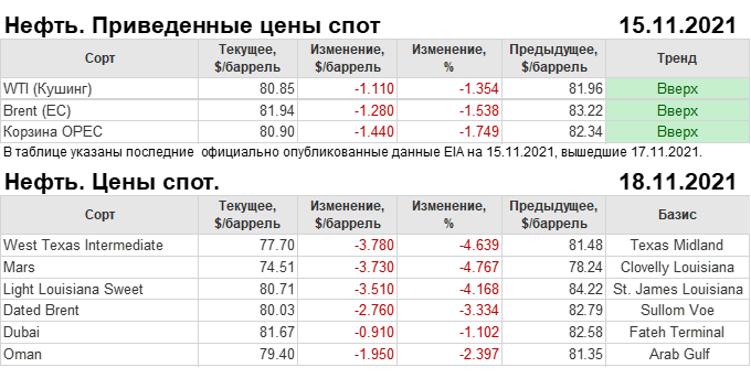 Нефть. Мировые цены спот по сортам и базисам. Данные на 18.11.2021