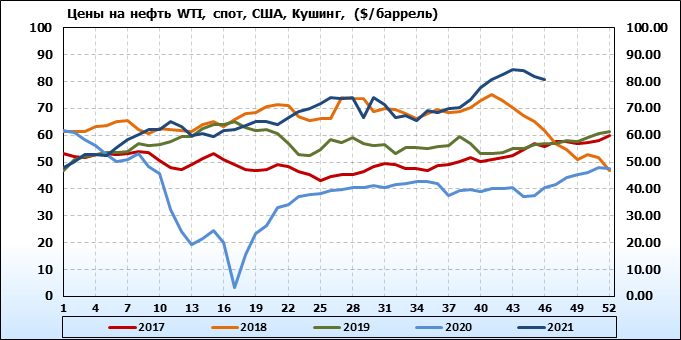 EIA. Добыча, импорт, экспорт нефти в США на 17 ноября 2021