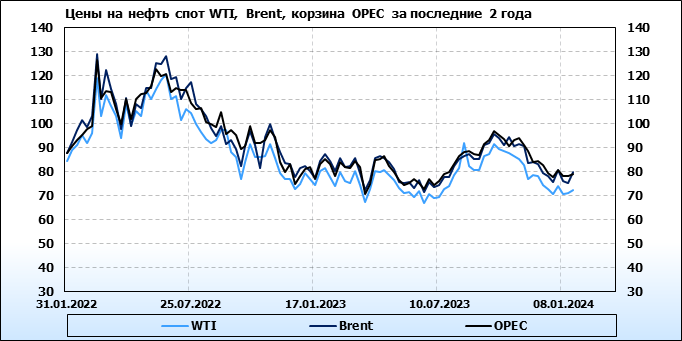 Нефть. Мировые цены спот по сортам и базисам. Данные на 19.01.2024