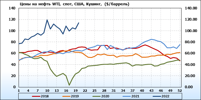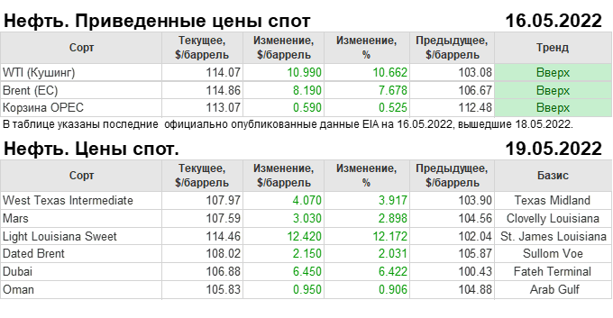 Нефть. Мировые цены спот по сортам и базисам. Данные на 19.05.2022