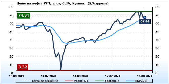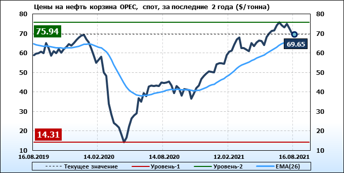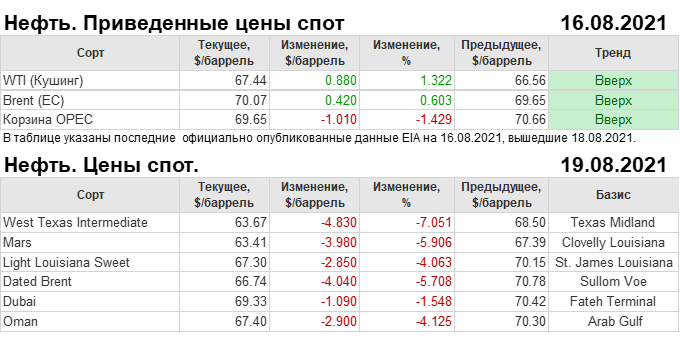 Нефть. Мировые цены спот по сортам и базисам. Данные на 19.08.2021