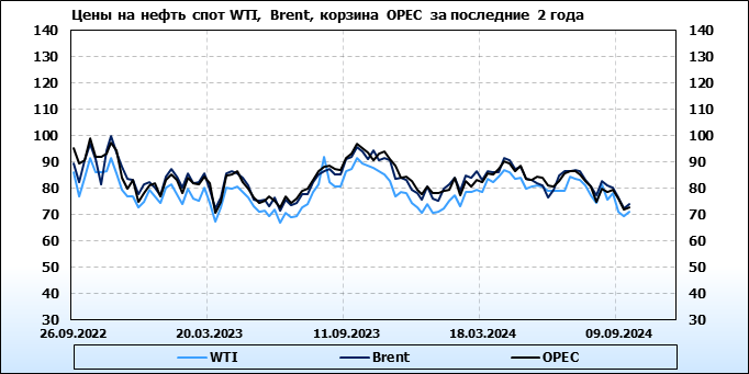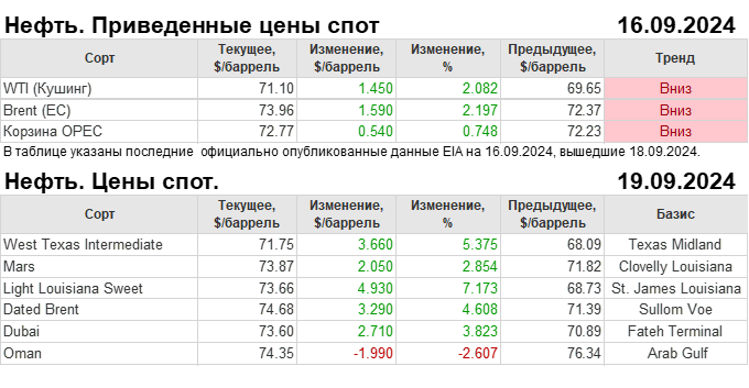Нефть. Мировые цены спот по сортам и базисам. Данные на 19.09.2024