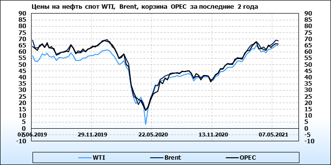 Нефть. Мировые цены спот по сортам и базисам. Данные на 20.05.2021