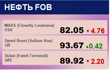Цены на нефть сорта WTI с базиса поставки Кушинг упали на -5.6 до 86 долларов за баррель. Тренд на рынке WTI медвежий. Цены на нефть сорта Brent с поставкой из портов ЕС упали на -6.09 до 91.04 долларов за баррель. Тренд на рынке Brent падающий. Цены на корзину сортов нефти стран членов ОПЕК упали на -6.97 до 92.16 долларов за баррель. Ценовая тенденция по корзине ОПЕК направлена вниз. Цена на сорт MARS упала на -4.76 до 82.05 долларов за баррель. Цена на сорт Oman упала на -3.35 до 88.87 долларов за баррель. Сорт марки Dubai подешевел на -2.2 до 89.92 долларов за баррель.