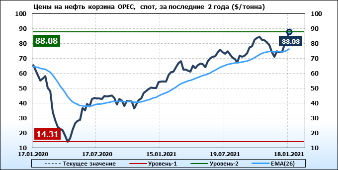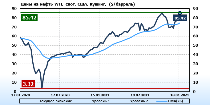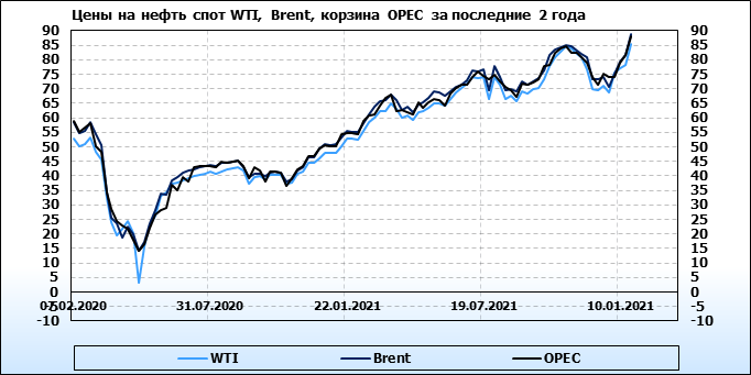 Нефть. Мировые цены спот по сортам и базисам. Данные на 21.01.2022