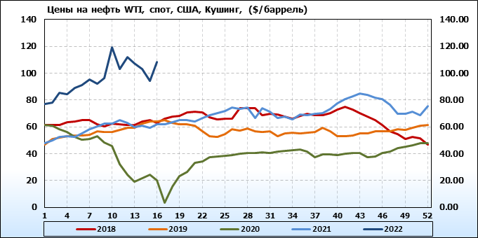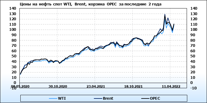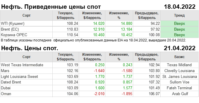 Нефть. Мировые цены спот по сортам и базисам. Данные на 21.04.2022