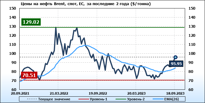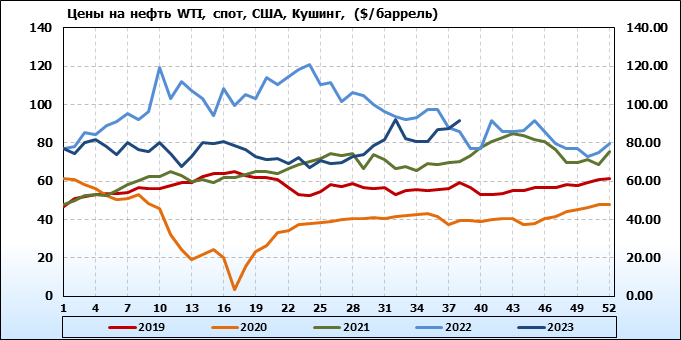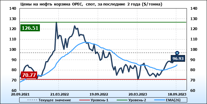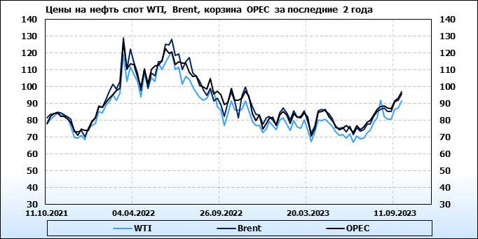 Нефть. Мировые цены спот по сортам и базисам. Данные на 21.09.2023
