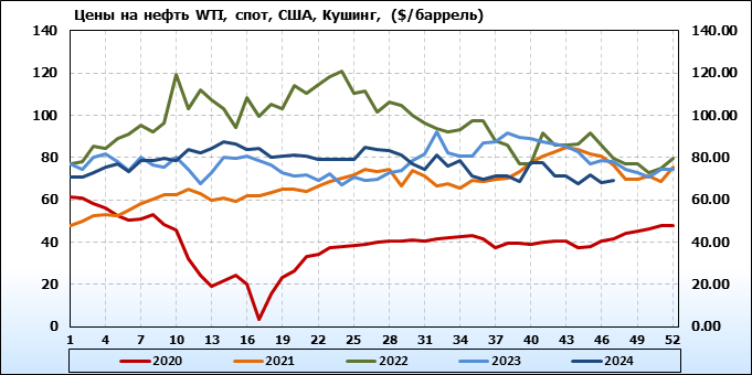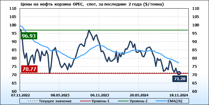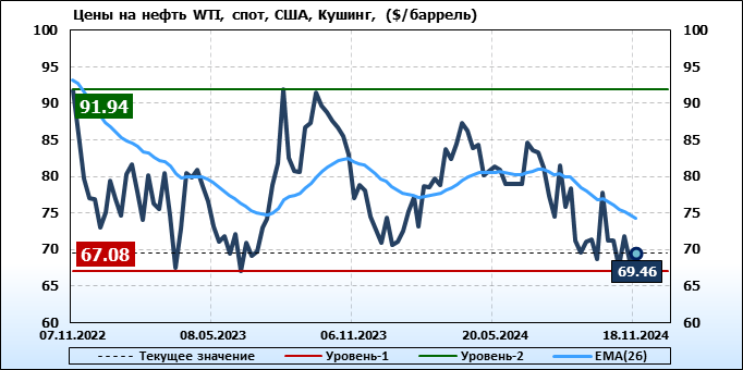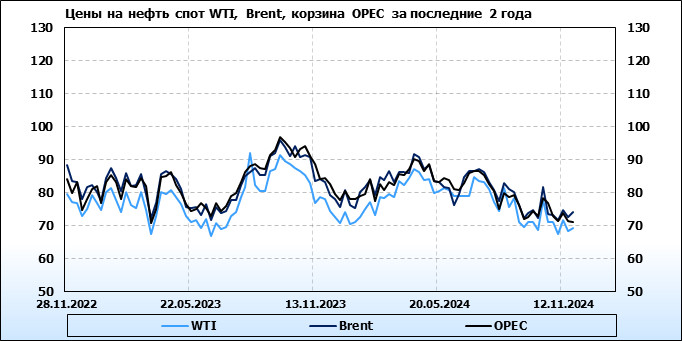 Нефть. Мировые цены спот по сортам и базисам. Данные на 21.11.2024