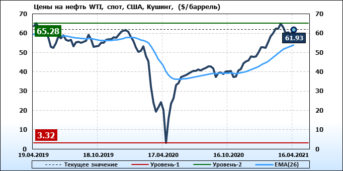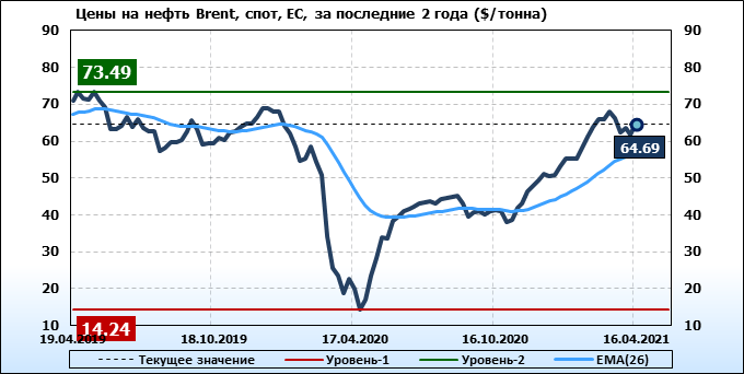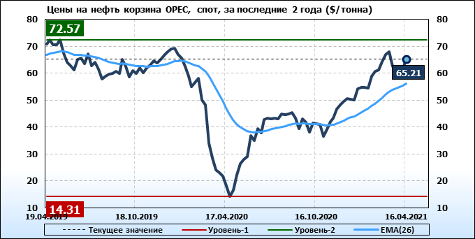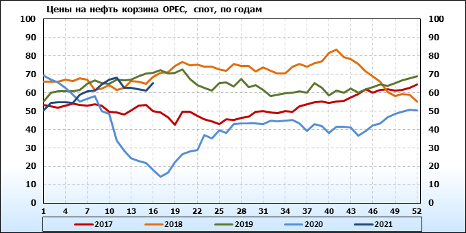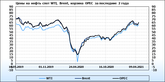 Нефть. Мировые цены спот по сортам и базисам. Данные на 22.04.2021