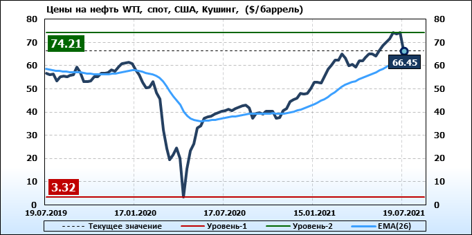 На прошлой неделе данные EIA показали неожиданное сокращение поставок нефтепродуктов в США при одновременном росте запасов бензина. На фоне объявления третьей волны пандемии, связанной со стремительным распространением более заразного дельта-варианта коронавируса, такие данные увеличили тревогу по поводу спроса на топливо. Предварительные данные по запасам нефти от API на этой неделе вновь показали рост запасов бензина, из-за чего нефтяные котировки вчера с утра снижались. Однако данные EIA не оправдали пессимизма, чем поддержали рост.
