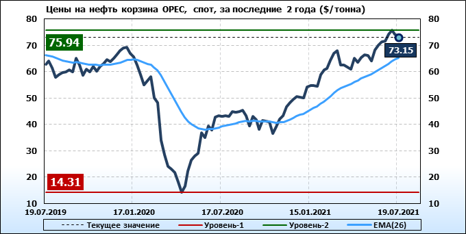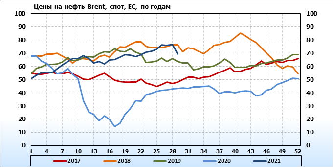 Нефть. Мировые цены спот по сортам и базисам. Данные на 22.07.2021