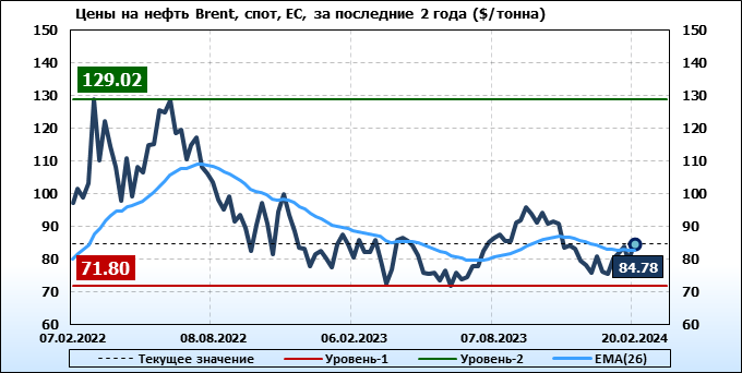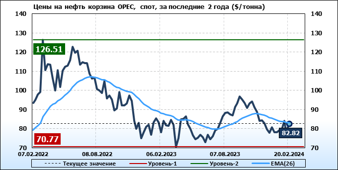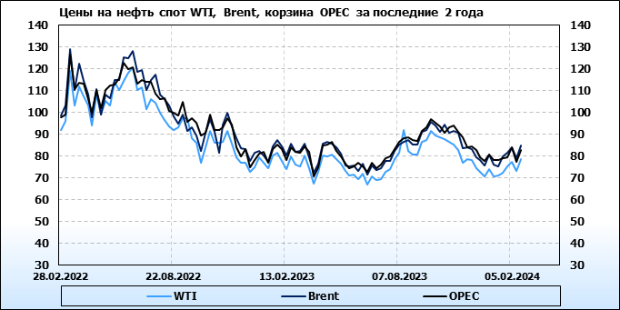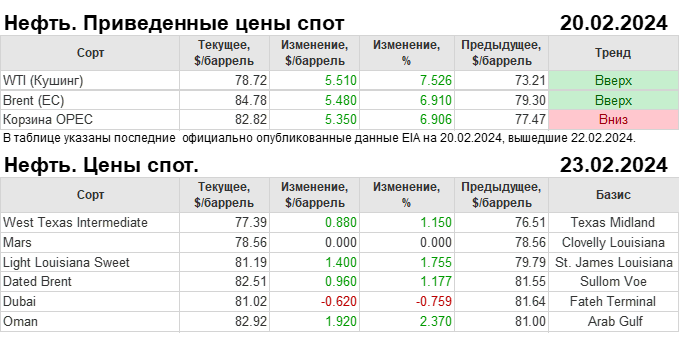 Нефть. Мировые цены спот по сортам и базисам. Данные на 23.02.2024