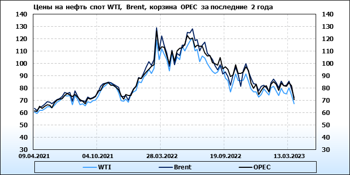 Нефть. Мировые цены спот по сортам и базисам. Данные на 23.03.2023