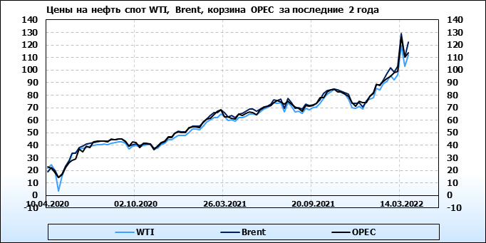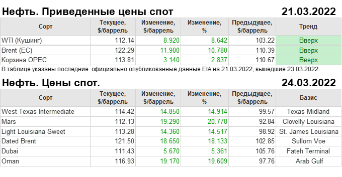 Нефть. Мировые цены спот по сортам и базисам. Данные на 24.03.2022