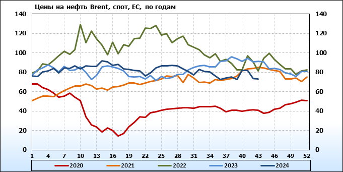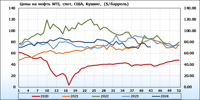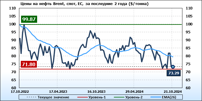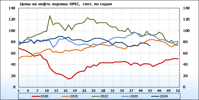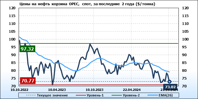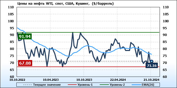 Нефть. Мировые цены спот по сортам и базисам. Данные на 24.10.2024