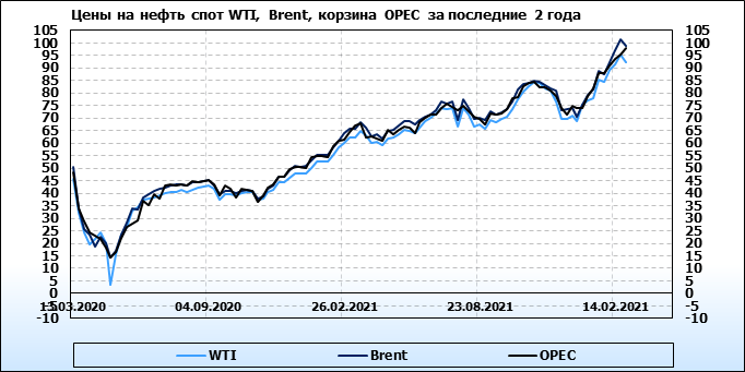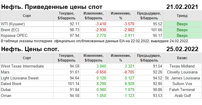 Нефть. Мировые цены спот по сортам и базисам. Данные на 25.02.2022