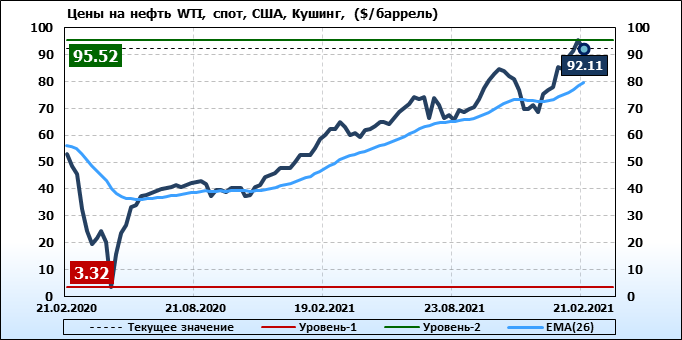 Во второй половине дня в четверг замедлению темпов роста стоимости «черного золота» способствовало увеличение коммерческих запасов нефти в США (исключая стратегический резерв) за неделю, завершившуюся 18 февраля, на 4,5 миллиона баррелей, или на 1,1%, до 416 миллионов баррелей. Аналитики ожидали роста показателя только на 0,4 миллиона баррелей.