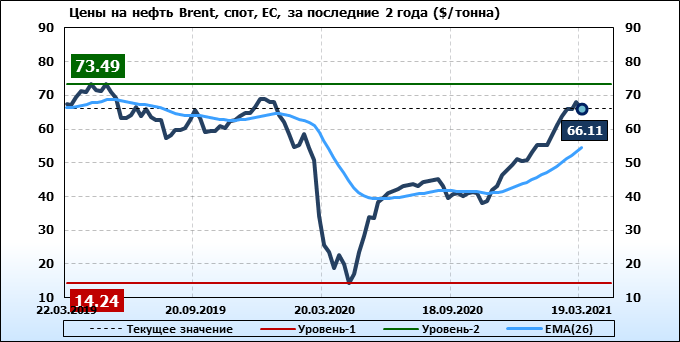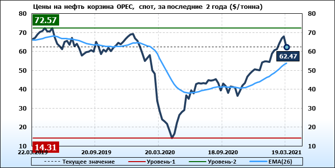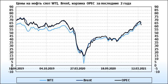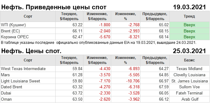 Нефть. Мировые цены спот по сортам и базисам. Данные на 25.03.2021