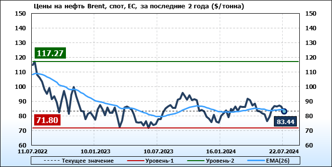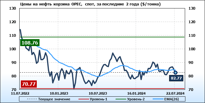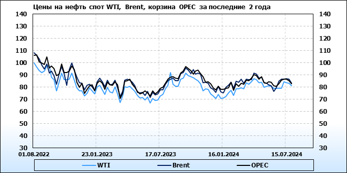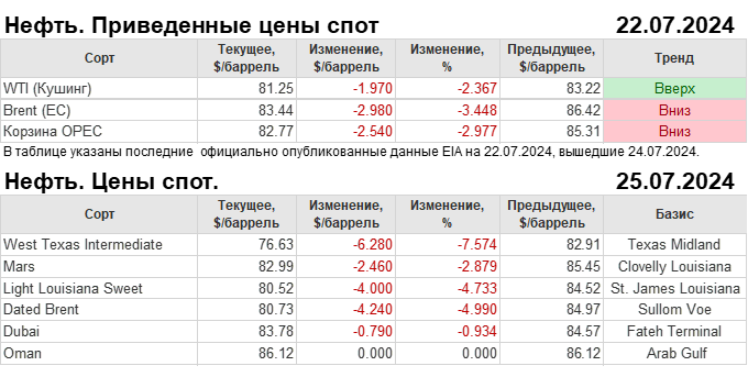 Нефть. Мировые цены спот по сортам и базисам. Данные на 25.07.2024
