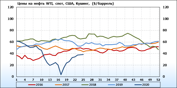 Нефти марки Brent 23 июня не хватило всего 7 центов, чтобы превысить отметку 44 доллара за баррель, впервые с 6 марта. Подоспевшие из США новости о росте добыче в стране на 500 тыс. баррелей в сутки впервые отбросили котировки к 40 долларам за баррель. «Докризисный» рубеж если и будет преодолен, то только на короткое время.